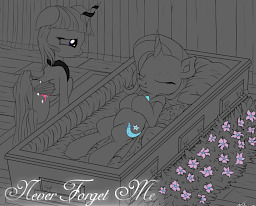 一个马都没有。只有她自己。唯一的装饰是一口无盖棺材,周围摆放着花朵,能看见里面一匹小马的上身。熟悉的蓝色皮毛和银白色鬃毛已经昭示了主人的身份,但暮光还是不相信。这不可能是崔克茜的葬礼。就是不可能。这不是暮光印象中的那个骄傲自大又夸张的崔克茜。