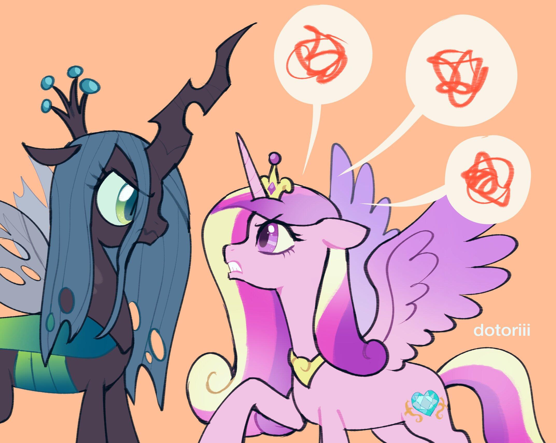 越过双向镜,韵律注视着这匹扮成自己模样的雌马。她心中的怒火已经熄灭,曾经令她深恶痛绝的幻型灵邪恶女王,如今也不再是一头怪物。现在,她看到的只是一匹悲哀,可怜,而又无药可救的雌马。她没有露出紧张或者担忧的情绪。她只是坐在那,凝视着玻璃另一侧的镜子。