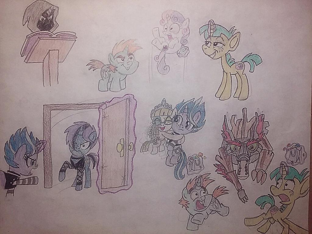 Sweetie Belle gasped as the creature gave a guttural growl and leaped at the birthday pony. Zipporwhill screamed and ducked, flying under the beast, her tiara skimming its belly. The Timberwolf’s fang sank into the pinata dangling behind her, and it shook it vigorously like a dog. As the papier-mache ripped, sugary missiles of candy flew everywhere.