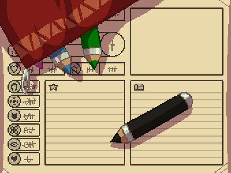 (破晓黎明滑过两张角色卡,一支彩色铅笔滚向你和月花)
