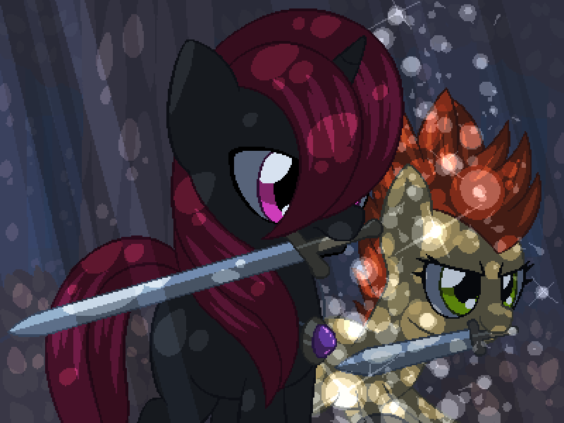 (白光站在其他马后面一个安全的距离,开始施展咒语。她的角闪烁着明亮的光芒,然后一阵光泡的爆发治愈了尾蹬,使她回满了生命)