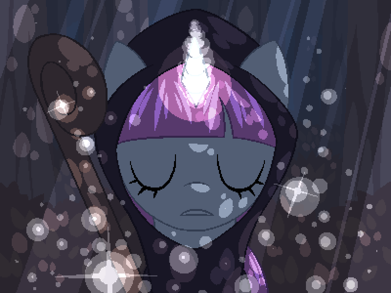 (随着她的魔力完全恢复,白光开始施展一个更强的咒语。她的角闪烁着明亮的光芒,然后一阵光泡的爆发治愈了尾蹬,漩涡,和血迹边缘,使他们回满了生命)