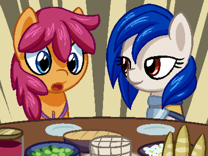 (在她们上菜时,你吃了一惊。你以前从没有见过这么多菜:各式各样的馅饼、花、豆腐、面包等等!)