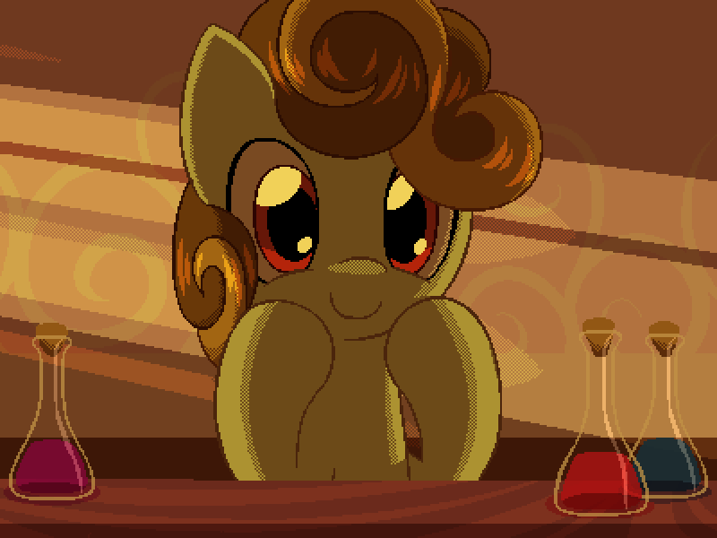 店主:“啊哦,看看那只小蝙蝠小马!哦,对不起。有什么我能帮你们的吗?”