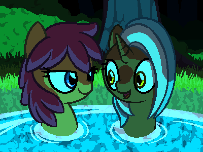 水晶宝饰:“你注意到了,嗯?这个池塘里生长的藻类有治疗作用。它们也是让这个池塘变得温暖和发光的原因。你喜欢吗?”