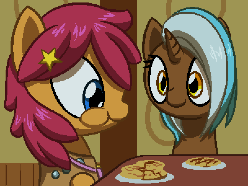 (你感谢钻石盾的薄饼,然后开始吃。那匹小雄驹随后很快就加入了你们,吃完饭后,两姐弟起来去准备工作)