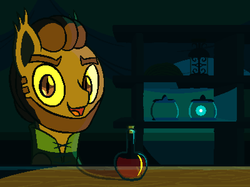 店主:“你不是这附近的马,对吧?哈,如果你要问的话,这是一种用毒笑话制成的药。把你身体的燥热统统赶走!”