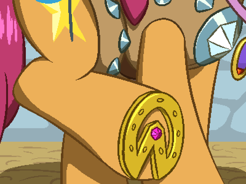 (你检查你的后蹄蹄铁,发现两颗宝石似乎都处于完美状态)