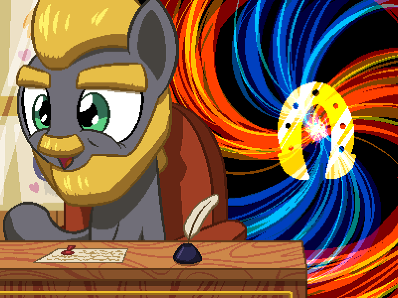 有一天,我遇到了一只名叫心灵冲击的年轻母马。她也是一只在训练中的小马,并且在这方面很优秀!但与我不同的是,她没装那么多蹄铁,更别提魔法宝石了。