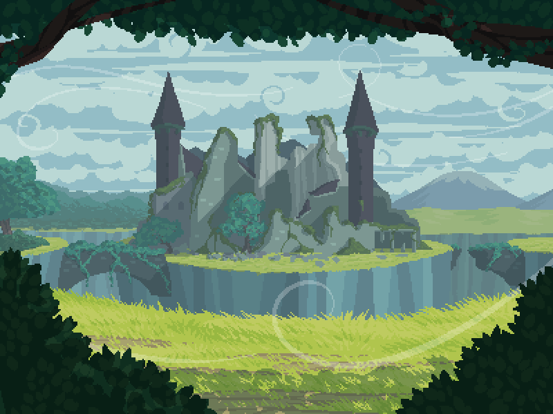 (你决定往北前进。走了几分钟后,你到了森林的边缘。永恒自由城堡废墟映入眼帘,周围被深邃的峡谷环绕着)