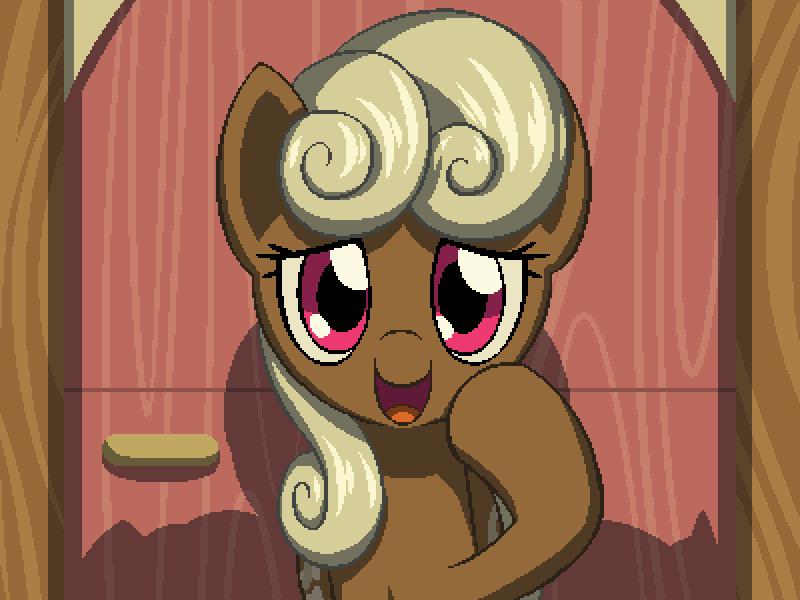 (你敲了敲门,门就打开了,出现了一只微笑着的雌性陆马。她的表情动摇了一瞬,因为她看了你的同伴一眼,但意识到那只蝙蝠小马似乎很友好,她恢复了镇定)