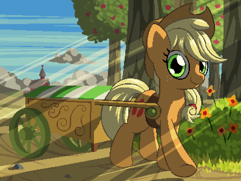 苹果杰克:“很高兴见到你,崔贝茜!现在,如果你需要什么的话,我之后正好要去集市。”