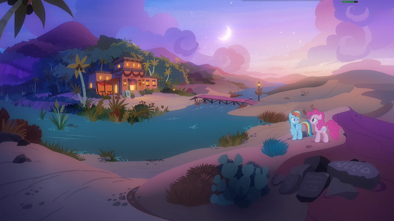 没过多久,在远处一里左右,能看到袅袅的炊烟从一座农舍的烟囱中升起,无畏加快了脚步,半跑着想着农舍门前。这座叫做Get On的旅社提供住宿加早餐的服务,老板是一只名叫Trotworth的脾气有些暴躁的上了年纪的母独角兽。在她名下,这样的旅社还有十座,只要交够了钱,就能在这儿住上一宿,当然还有早餐提供。想到了这儿美味的胡萝卜苹果粥(注:你们小马吃的都是什么鬼东西)无畏不禁流下了口水。上次在这儿驻足,无畏在连吃了几大碗后在恋恋不舍的放下了手中的碗。无数旅行者愿意选择住在这儿最大的原因也是无畏最喜欢的一点是掌柜的从来不会多问旅行者来这儿的目的还有要去的目的地,这样,谁都不会因为知道太多惹上麻烦。冒险者从来不知道是否正被谁尾随,无畏不仅要对付水猿,还被卡巴雷隆针对,她不愿意被任何一匹小马接近,独自工作是最好的办法来避免窘境。 在茂密的树林遮挡的视野之间,无畏能看到前门上摇晃着的吊牌,在微风中咯吱咯吱的作响,这声音让无畏想起了操场上跷跷板的声音,在吊牌上,赫然写着两个大字—空房,这让无畏长舒了一口气,她踩着凹凸不平的小径走向了大门口。