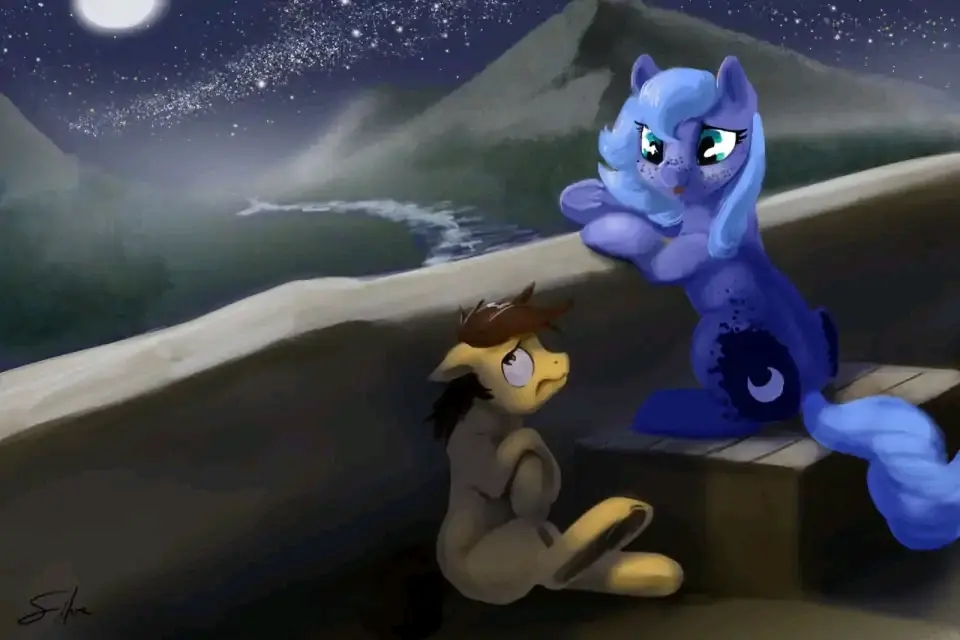露娜:我在安抚我受惊的伙伴时得到了我的可爱标志,他非常害怕美丽的夜晚。所有小马都认为这代表着我应该加入小镇守卫并在夜晚保护小镇。我觉得我仍然是一个守护者,在夜晚驱散恐惧。
