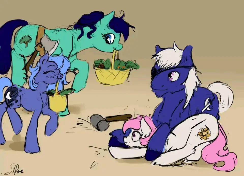 塞拉斯提亚:一只伐木马和一个从前线退役下来的铁匠,尽他们所能养大了两只淘气的小雌驹。另注,和我爸爸摔跤真是个糟糕的主意。