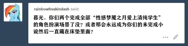暮光:不,我看不出以这种方式提出她漫长一生中最痛苦的事会有什么好结果。即使我对此感兴趣,我也会很快把我那糟糕的歪脑筋甩出去。