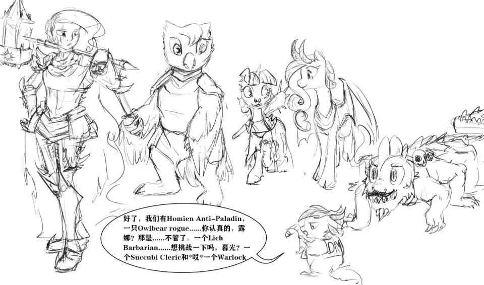 这里翻一下这几位的职业:人类堕落圣武(比较正常),枭熊(或者萌咕咕)游荡者,巫妖蛮子(暮光你认真的?肉搏巫妖……),魅魔牧师(韵律你该不会信色孽吧),还有个术士(看种族……不那么正常)。