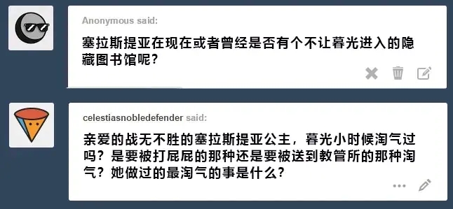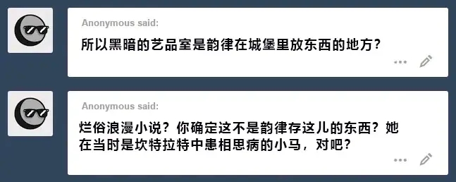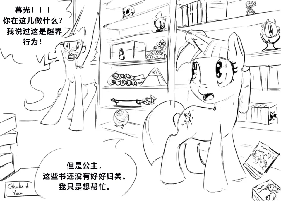 暮光:几年后,我想起了那件事,最终意识到了那些书里到底是什么。我一星期都不敢直视塞拉斯提亚公主的眼睛。说真的,谁会把足以毁灭世界的史前器物存放在他们肮脏的浪漫小说室里?!