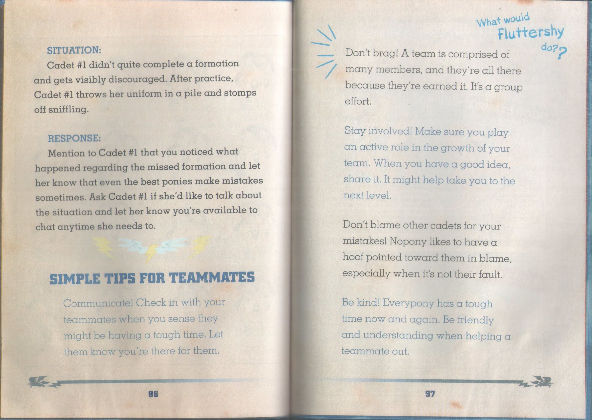 不要因为你的错误责备别的新兵,没有任何一匹马喜欢被其它马责备,尤其这不是他们的错误的时候。