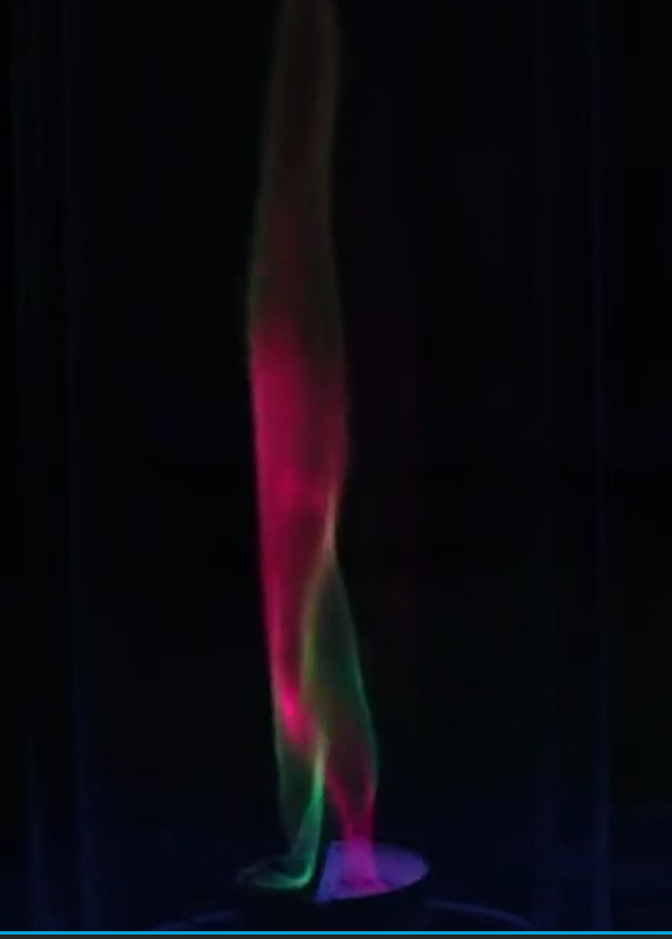 圆筒内的空气缓缓形成涡流,让火焰升腾而起,四个小小的彩色火焰龙卷缓缓成型。