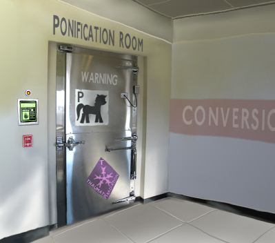每天,三名申请者,在接受他们的两周训练途中,会被叫进转化室进行转化。当他们在新的身体中醒来,在决定选择直接走出大门,或者乘坐交通工具进入小马利亚之前,他们会返回舱房进行最后的训练。大部分直接选择走出大门。现在旧金山的半数人口已经是小马了。很快就会是整个人口。