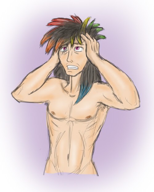等等……刘海?什么东西?哦,不,不。我看向镜子,差点大叫了起来。我应该是留着短发才对,而不是现在这种长疯了的样子!我身上到底在发生什么事?我看起来像是《最终幻想》里面的一个角色!我长着把我四分之一个脸都遮住的刘海,以及及肩的长发!它还是,等等,这头发是不是染过?我朝前倾了倾。我头发应该是暗棕色的,但现在却是淡淡的全色域的渐变色。在背后,我的棕发有微微紫罗兰色。但在前面,这棕紫色却变成了一条不易察觉的彩虹色带。