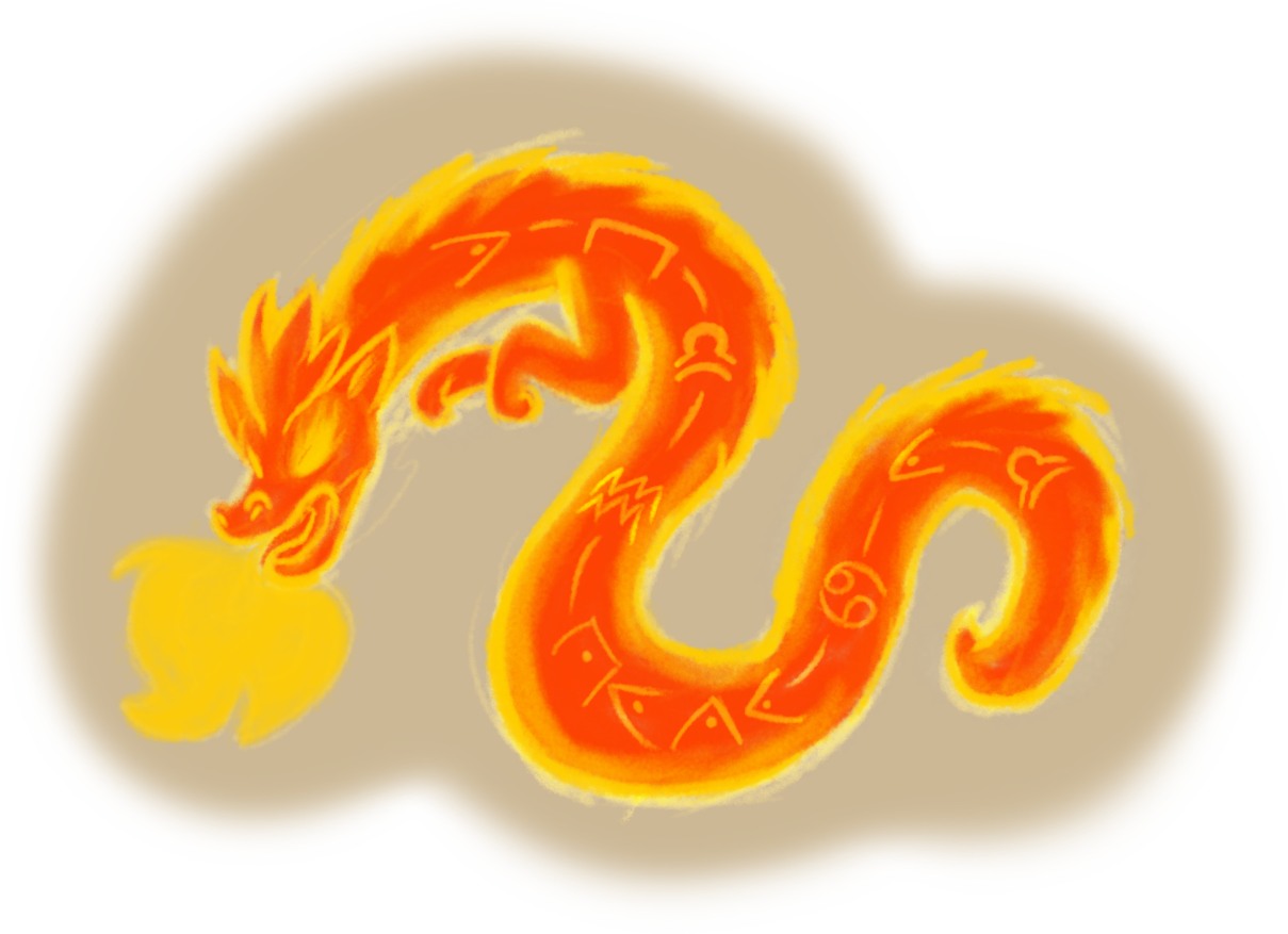 空中有个身影向他们直冲而来,是一条龙。它简直像天空中的一片火海,喷吐着蓝绿紫三色烈焰。它的动作非常迅捷,快到几乎看不清它脊背遍布的符文。这条凶兽纤长优雅,透明的身躯背生鳞片,类似莫里亚在中国新年游行①中能见到的那种生物。