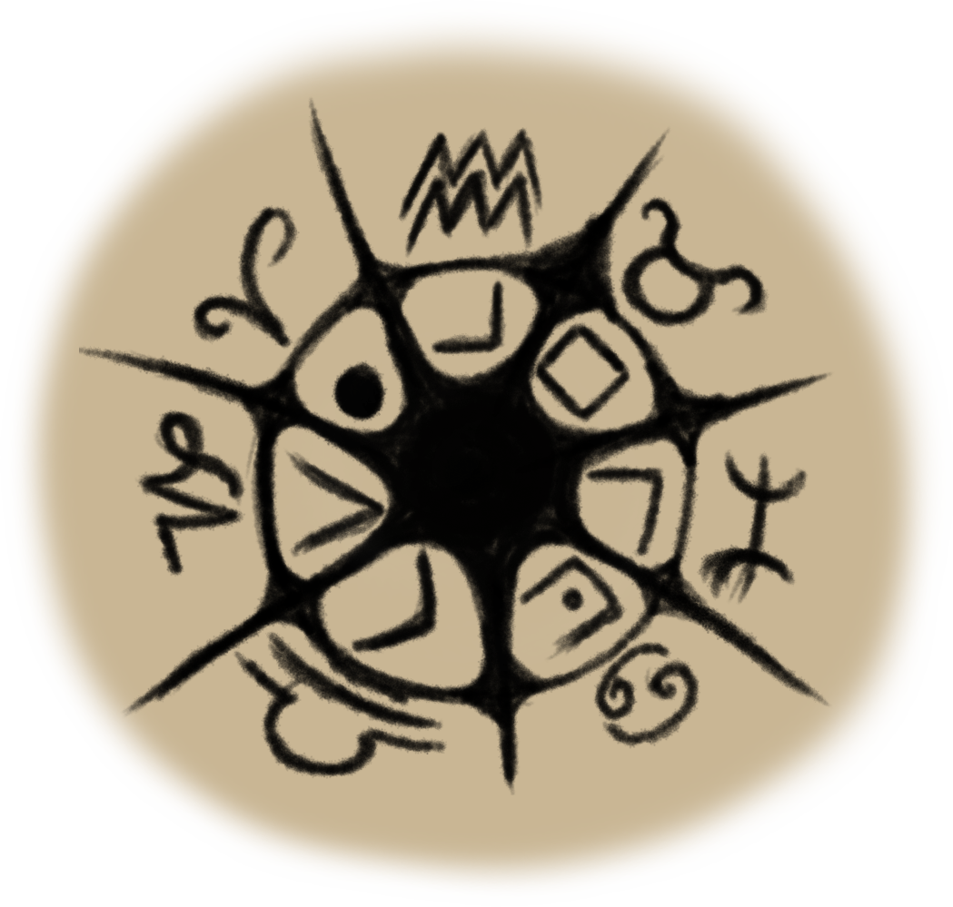 黑色颜料写成的艾奎斯陲亚符文覆盖了每一个角落、每一个表面。地面几乎被完全清空了,上面涂画着错综复杂的图形。阴天是一点都看不懂,但她很确定乔瑟夫能看出来的信息肯定比她多。她不可能记住所有东西,但她还是在脑海中给墙上一幅独立的图案画了份速描。