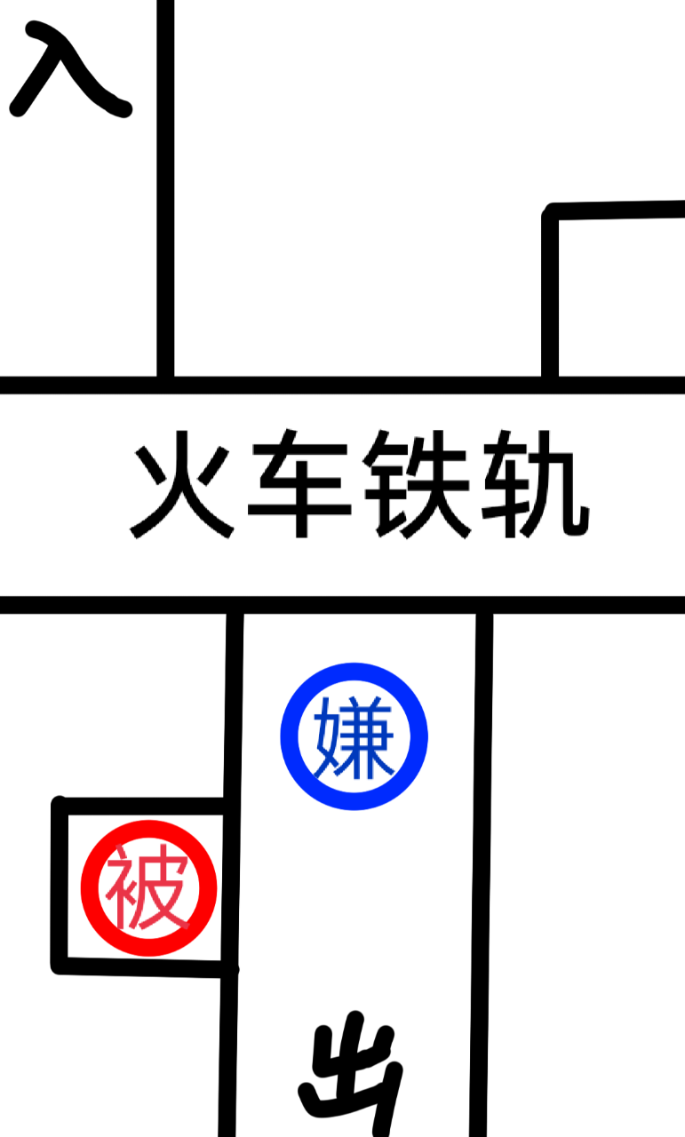 嗯...请看现场的俯视图。被告处于铁桥出口附近卖瓜,而被害就在不远处被推下桥。