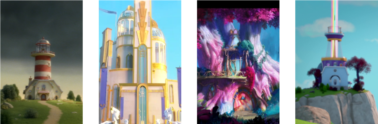 解析:本题的正确性是显然的。从左到右分别是Sunny曾经的旧灯塔、Zipp和Pipp的城堡、Izzy的树屋和Sunny的新家,故选D。
