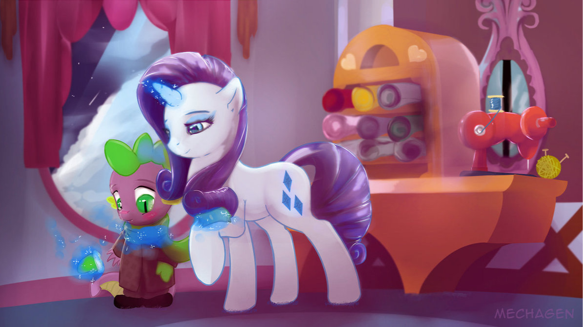 “我发誓,你们三个来这里只是为了让我干更多的工作,”斯派克尽可能地以负责任的权威语气说道。事实上,那权威没多少,因为他试图斥责的三匹小雌驹差不多和他一样大。