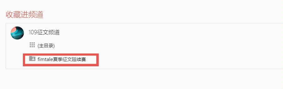 请在规定时间期限内按以上要求在FimTale发表主题文章;同时,请关注“109征文”频道,将文章收入“fimtale夏季征文延续赛”文件夹。具体操作方法如下: