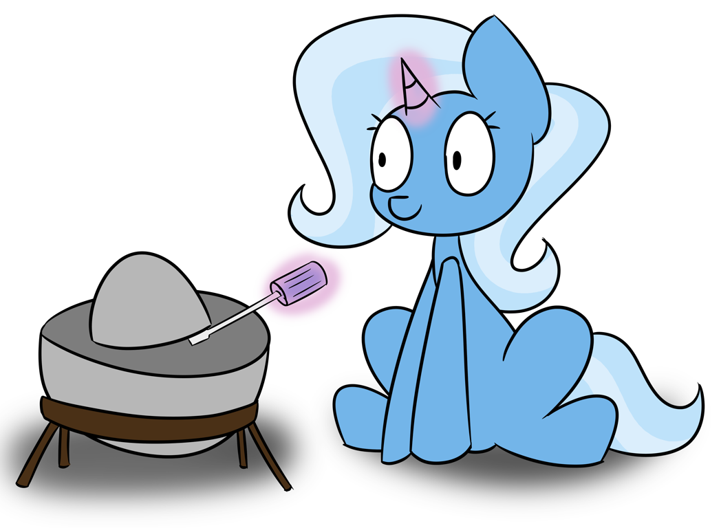 “这是一个金属球,大概这么大,”红心张开双蹄示意到,“它被放在一个金属砖底座中央的洞中。她通过用一把螺丝刀升降顶部的另一个半球来控制烧烤的温度②。”