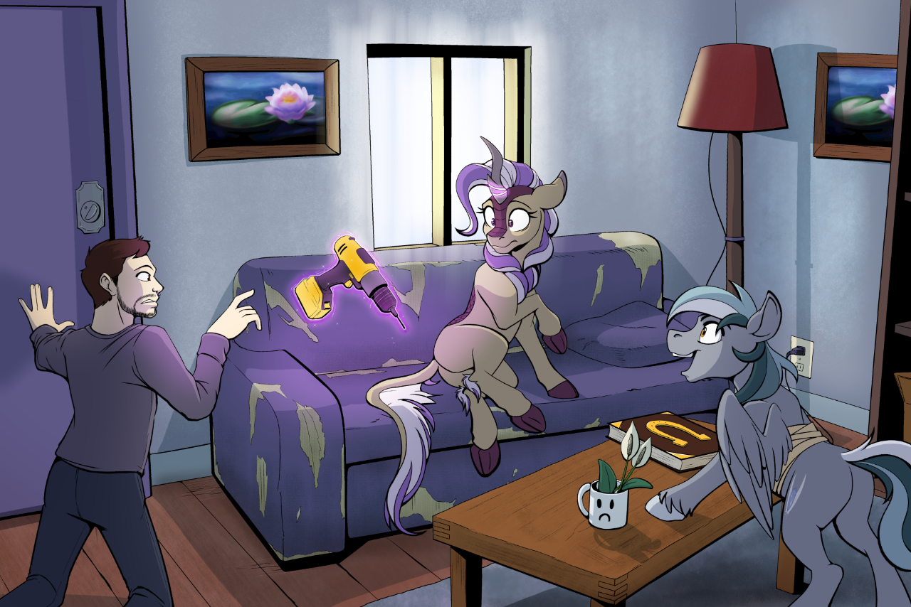 突如其来的关注让莲花的注意力再次分散。钻头扑通一下就掉了下来,幸好没有砸到自己的蹄子。“我不知道我做了什么……”她小声说。但摆脱了两天以来的失败,她还是忍不住露出了笑容。“指导书里可没写怎么接住电动工具。”