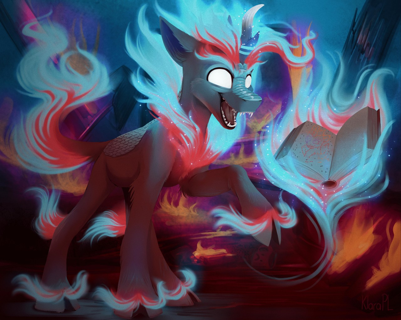 但莲花全不在乎。木质建筑发出令人不安的声音,烟雾报警器发出刺耳的警告。莲花有些畏缩了,她的耳朵紧贴着头部,以此对抗恼火的回声。为什么这破警报器还在搁着乱响?她抬起头,气势汹汹地用蹄子指着它。火焰服从了,沿着墙壁一阵飙升,吞噬了那个小塑料块。它绝望的告警湮没在了火光之中。