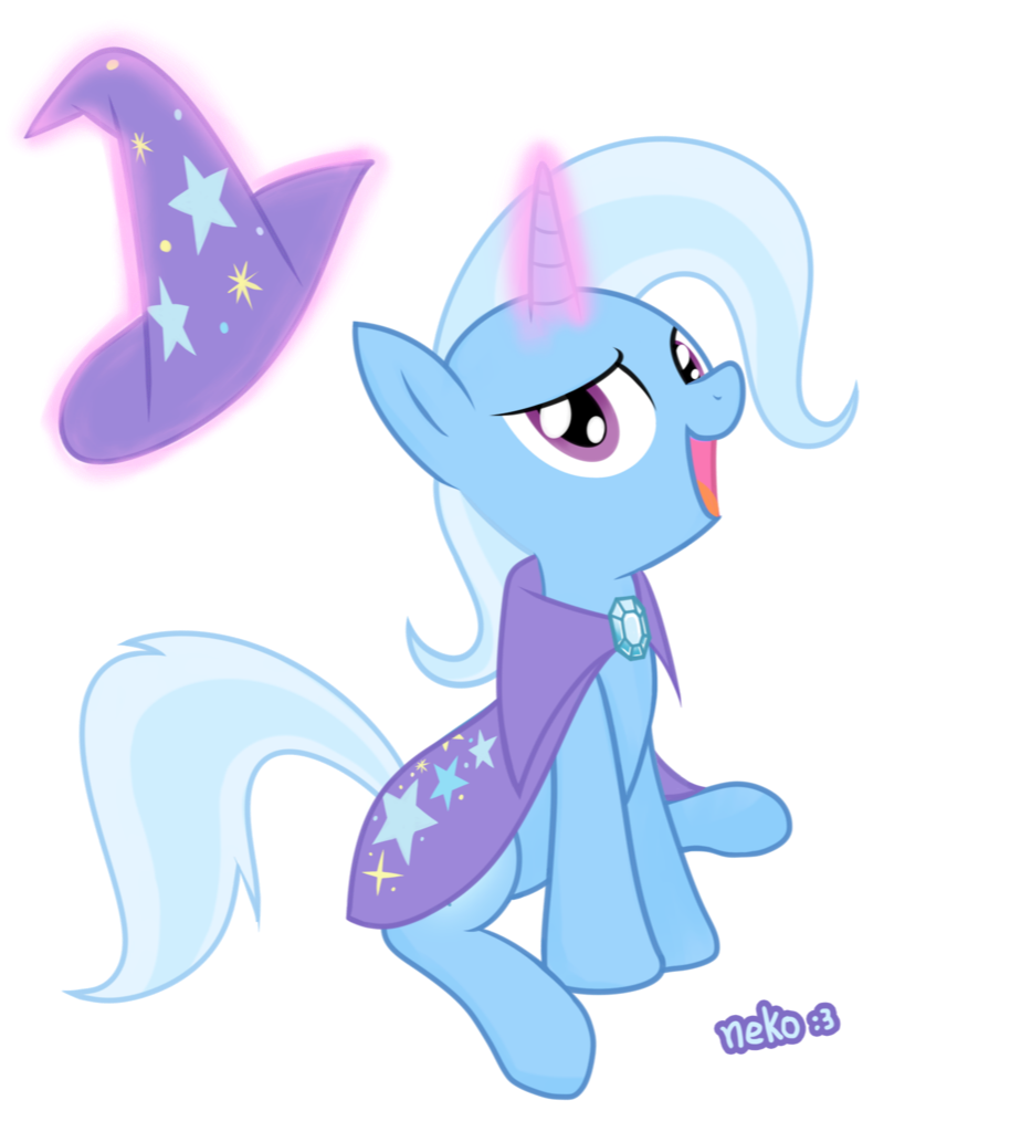 塞拉斯蒂娅叹了一口气,如果阿匿这边一切都很顺利,那她无权试图告诉他该怎么做。厨房的门呯地打开了。一匹天蓝色的雌驹站在那里,看起来得意洋洋。她头戴一顶大法师帽,背上披着一件也很大的斗篷。这两件衣物上画着各种星形图案。