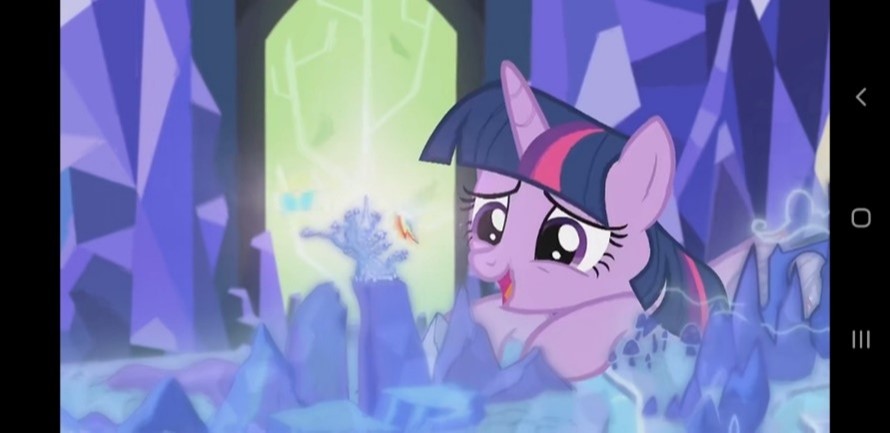 “没错,但现在的友谊魔法已经不是具体代表着某个法器了,而是我和我最要好的五匹小马的身体里。”暮光说着便指了指自己说道。