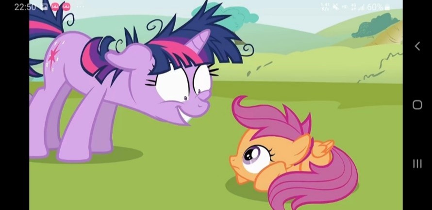 云宝闭着眼睛哭泣着,正当她以为小马利亚将要灭亡之时,暮暮一蹄子抚摸到了她彩色的头发上。