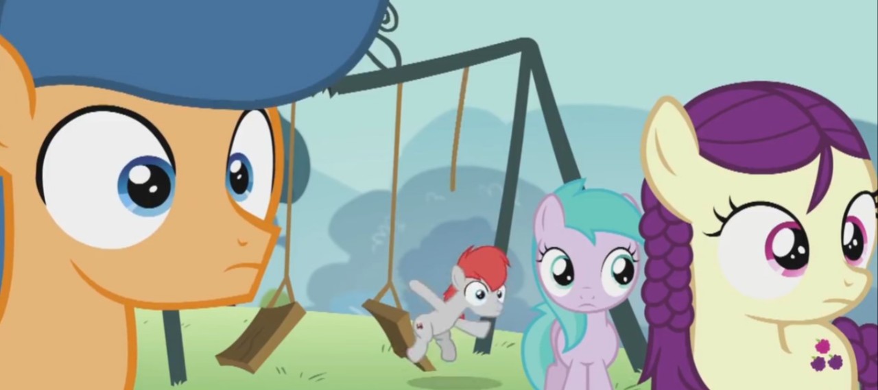 他说完,操场的秋千就突然断了根绳子,坐在上面的陆马小马驹也随之倒地。