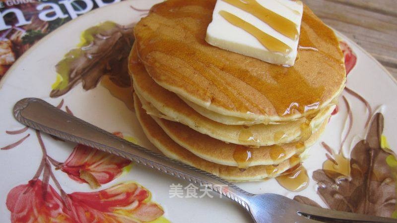 但是无论如何,最重要的部分都不能丢,在薄饼上面放上一块黄油,再浇上糖浆,这道菜才算完美完成,画龙点睛嘛,怎么能却了这最重要的一笔呢?