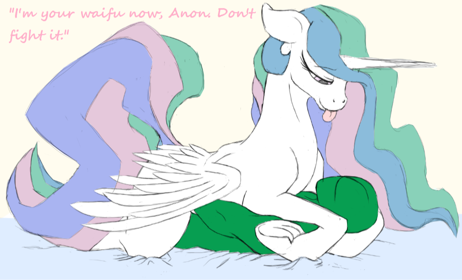 塞拉斯蒂娅微笑着,用魔法将他抬起来,放在她的床上。她爬上去,四只蹄子缠住他,而他休息时面对着她。