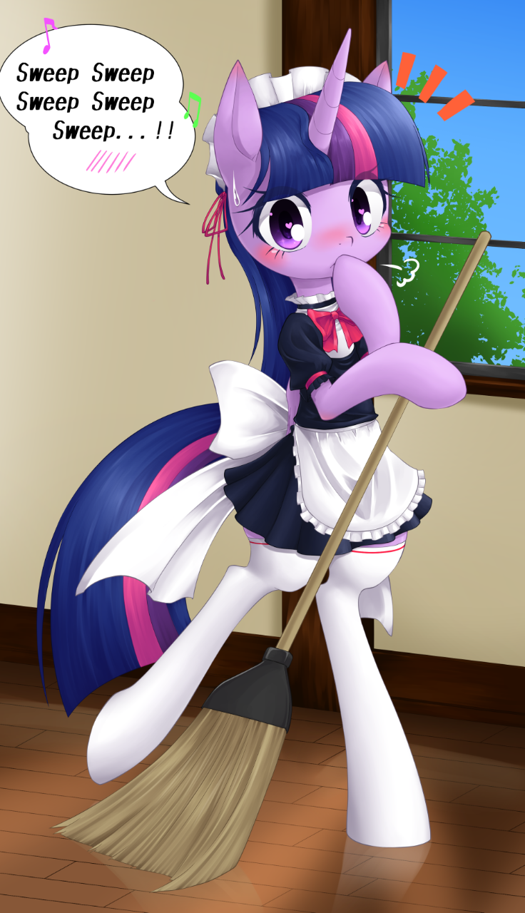 暮光兴高采烈地在城堡里走来走去,飘着掸子,清理一个她经过的花瓶。完成后,她转到一排中的下一个花瓶上。她从没想过干一份工作会如此令马兴奋!斯派克向长羽掸掸推荐给她一份工作是对的,这匹年轻雌驹的仔细审查差点让暮光在最后一刻退出,但总的来说工作是甜蜜的,并且她为自己所做的事感到自豪。不过,如果说暮光有什么抱怨的话,那就是服装。