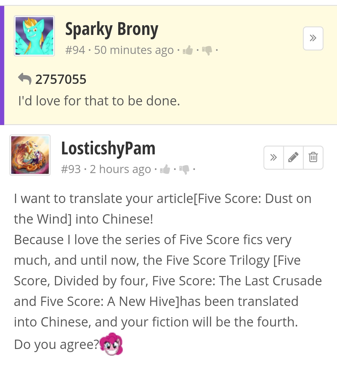 之前读到了飞机pie写的《百分上脑》,我才了解到马圈竟然有这样一篇长篇巨著——《百以四分》…………如今,我对百以四分系列的故事十分喜爱感兴趣,而最近,我在FIMFiction又读到了全新一篇可以与百以四分三部曲媲美的顶尖二次同人小说——《百以四分:风之尘》,我不禁被其有趣精彩的故事情节所深深吸引,于是,我迫不及待想把它翻译出来,也让大家能跟我一样仔细品读这一篇长篇巨著!