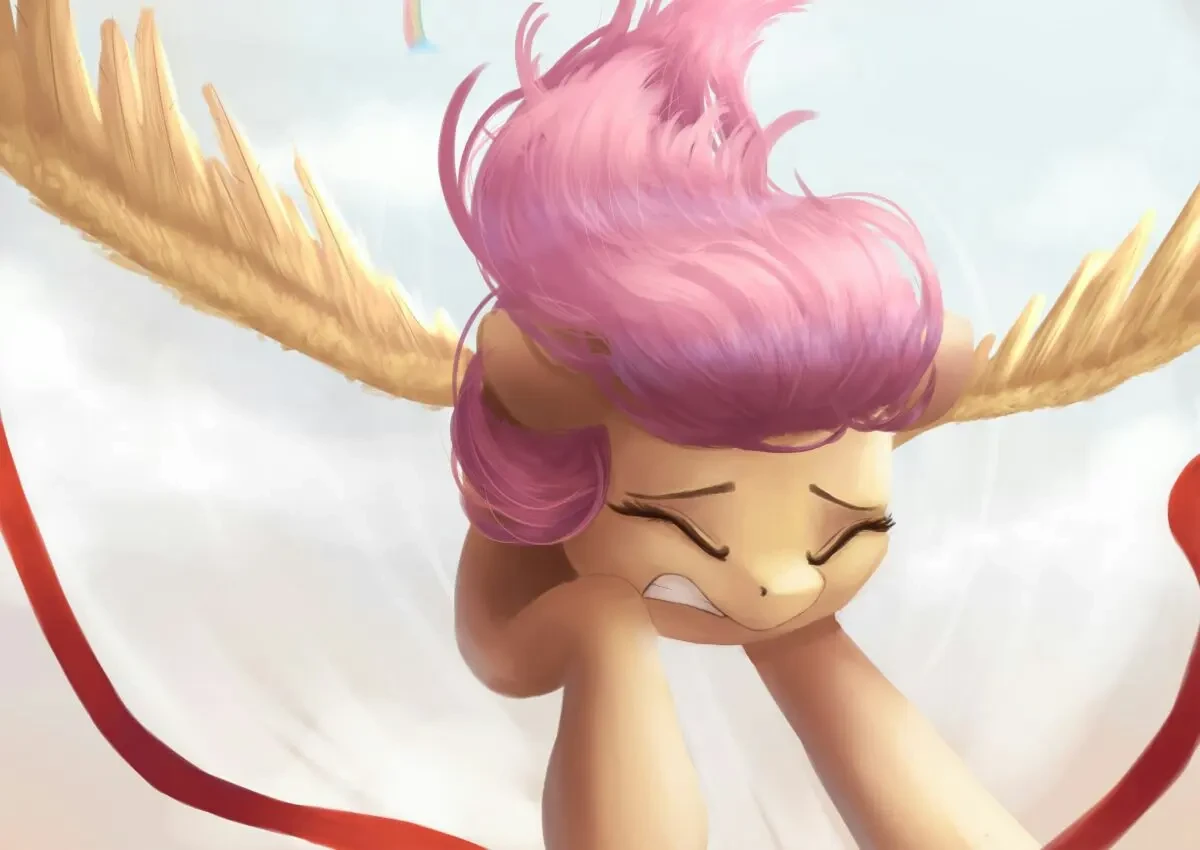 当一匹小马的意识放弃挣扎,主动坠入那无尽深渊。灵魂放弃肉体在凡间可以拥有的权利,何尝不是一种悲哀?灵魂就算在边境渡口等待下一辈子的轮回,它还会记得前世受过的苦难吗?黑曜石双眼的视线模糊,尖锐的声音如鸣笛般在耳边奏响。它感觉自己的身体快要被烤焦。危急时刻,一个硕大的身影敏锐冲往岩浆之中,它似乎张开羽翼,保住黑曜石。再听咔嗒一声,那囚禁愿景板的金属牢笼摇摇欲坠,在不同位置裂开一个缺口,导致牢笼迅速瓦解,如瓦砾般重的金属栅栏不断落入滚烫岩浆中,溅起巨大火花。