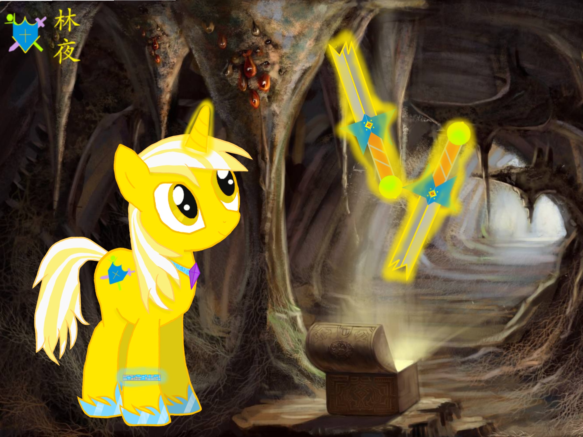 不过,这还不是最诡异的一件事,诡异的是,从镜子中看到的不只有紫悦她们,而且后面还看到了两匹小马,一匹像是那匹淡金色的小马长大了一样,但不同的是,他并不是独角兽,而是一匹天角兽,而且臀部的可爱标志还更加复杂。而旁边的那匹小马就像是紫悦的放大版,同样也是天角兽。
