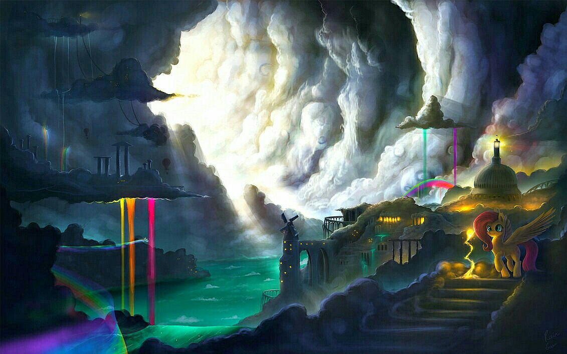 绕峰路转挂长虹 彩光大明照地空
