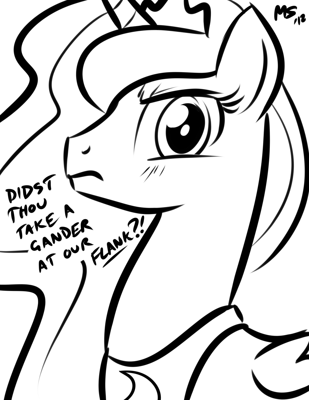 这是你画得最好的一幅。画里一个英俊得惊马的人类正靠在一匹魔法美马的屁屁上磨磨蹭蹭。你花了大约十五分钟才把这幅画画得像样子。