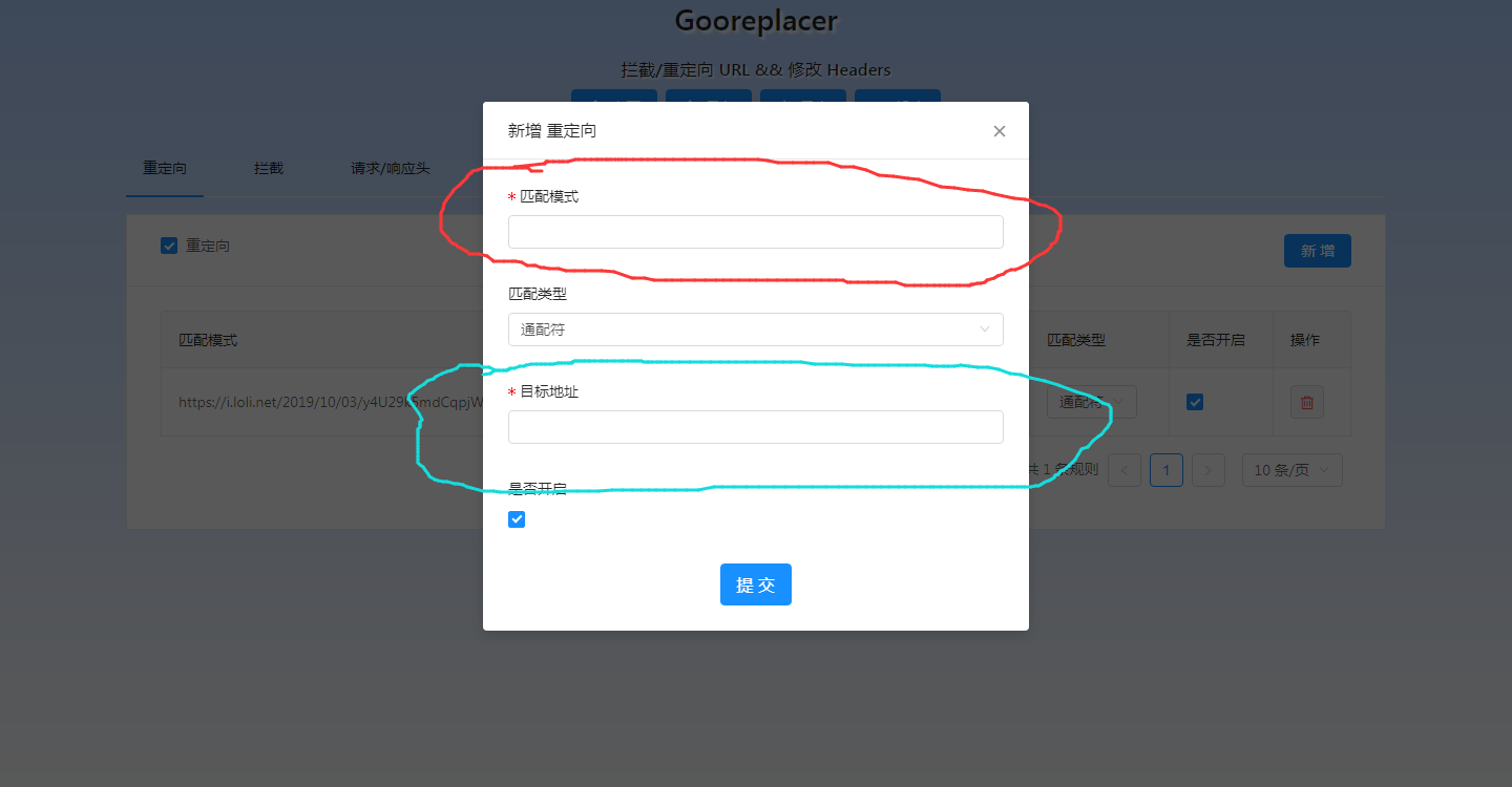 在红圈内填入https://i.loli.net/2019/10/03/y4U29k5mdCqpjWL.png 蓝圈内填入你在第一步得到的图片链接(有的图床可能给一大串用在其他编辑器的代码,请删去额外的部分,获得一个完整的链接,你打开这个链接应该可以看到你上传图片) 并保存