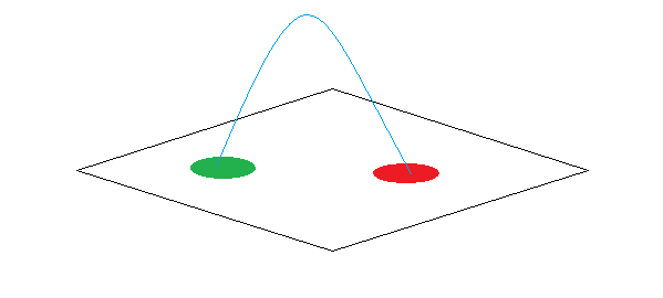 上图为包含三维膜,独角兽(红色点),目标点(绿色点)及膜外的引力触角(蓝色线)的示意图