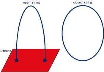 弦理论是一门理论物理学上的学说。弦理论里的物理模型认为组成所有物质的最基本单位是一小段"能量弦线"[1],大至星际银河,小至电子, 质子,夸克一类的基本粒子都是由占有一度空间(只有长度,没有宽度的线)的"能量线"所组成。 弦的长度为10^-34米,每秒钟振动10^42次,振动速度达到光速(约每秒30万千米),振动时有一个或多个不振动的节点。弦分为开弦与闭弦,开弦最为经典的例子就是光子(光的基本粒子)与物质,闭弦有引力子(承载引力)等。开弦像一根线段,有两个端点,光子有最简单的开弦振动模式,只有一个节点;闭弦像一条橡皮圈,没有端点,引力子有最简单的闭弦振动模式,只有两个节点。在弦理论中,时空有10~11维,而在三维空间中,存在着"D-膜",开弦由于有端点,只能在膜上滑动,所以我们无法到达四维空间,但如引力之类的闭弦由于没有端点,能脱离膜运动,能够到达更高维空间,所以我们感受到的引力已经有很大部分"流"到了更高维空间,已经减弱了。